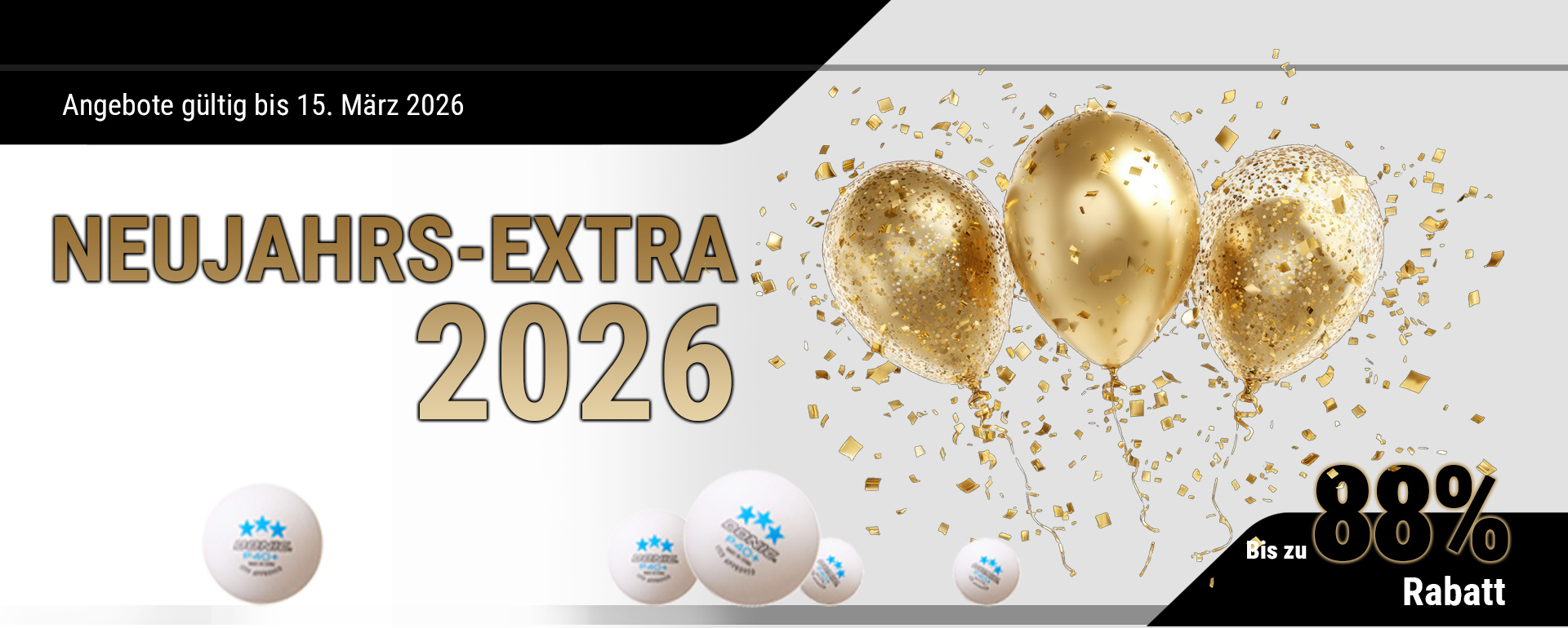 *Rabatte gültig nur für nicht reduzierte Artikel. Von Rabattierung ausgenommen sind Tische inkl. Ersatzteile, Serviceleistungen (Textilbedruckung, Montage etc.), TT-Roboter, Vereinszubehör, Bücher, Auslaufartikel sowie bereits reduzierte Artikel und vereinbarte Stammrabatte. Von der Rabattierung ebenfalls ausgenommen sind auch einige der Tibhar-Produkte.