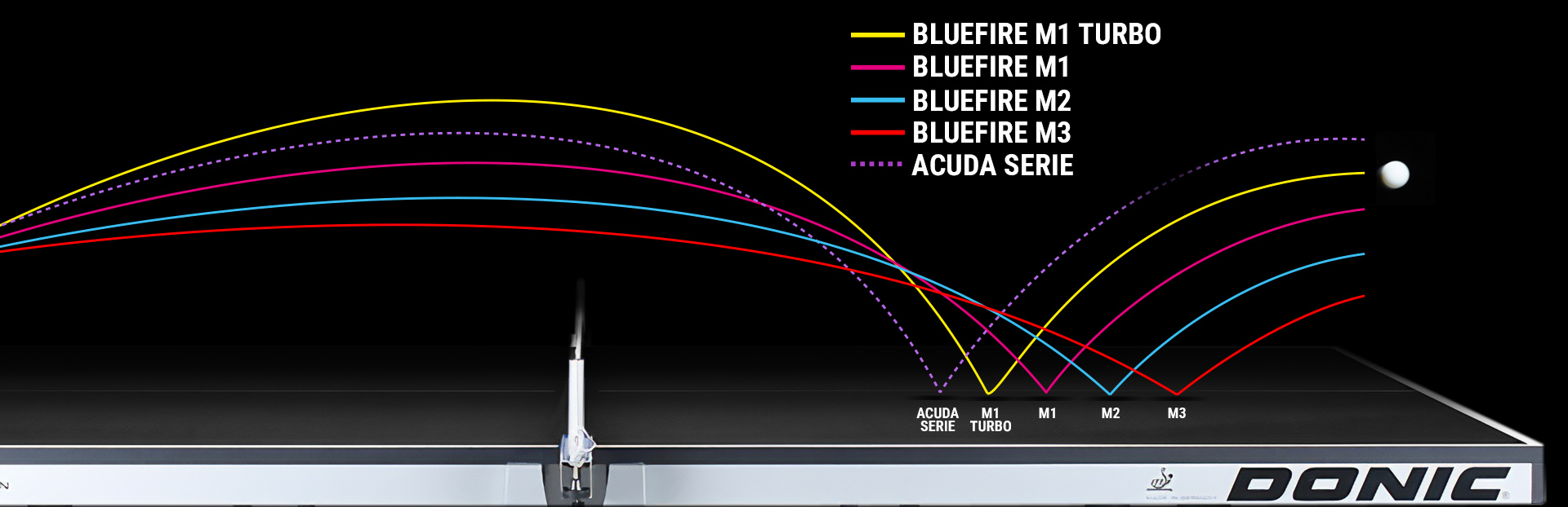 • Die Varianten BLUEFIRE M2 und M3 bieten eine exzellente Ballrückmeldung und sind somit ideal für Allrounder, die in aktiven wie passiven Spielsituationen – insbesondere im Block- und Konterspiel sowie im Aufschlag-Rückschlag-Bereich – ein starkes Feedback benötigen.