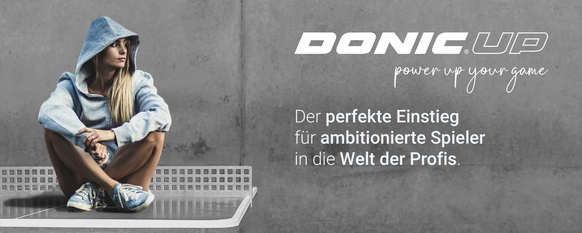 Die Traditionsmarke DONIC entwickelt seit über 40 Jahren professionelles Equipment im Tischtennis. Mit DONIC UP gibt DONIC ambitionierten Spielern leicht verständlich konkrete Empfehlungen für Holz- und Belagskombinationen, die jeden Tischtennis-Spieler in die Lage versetzen, alles aus seinem Spiel herauszuholen.